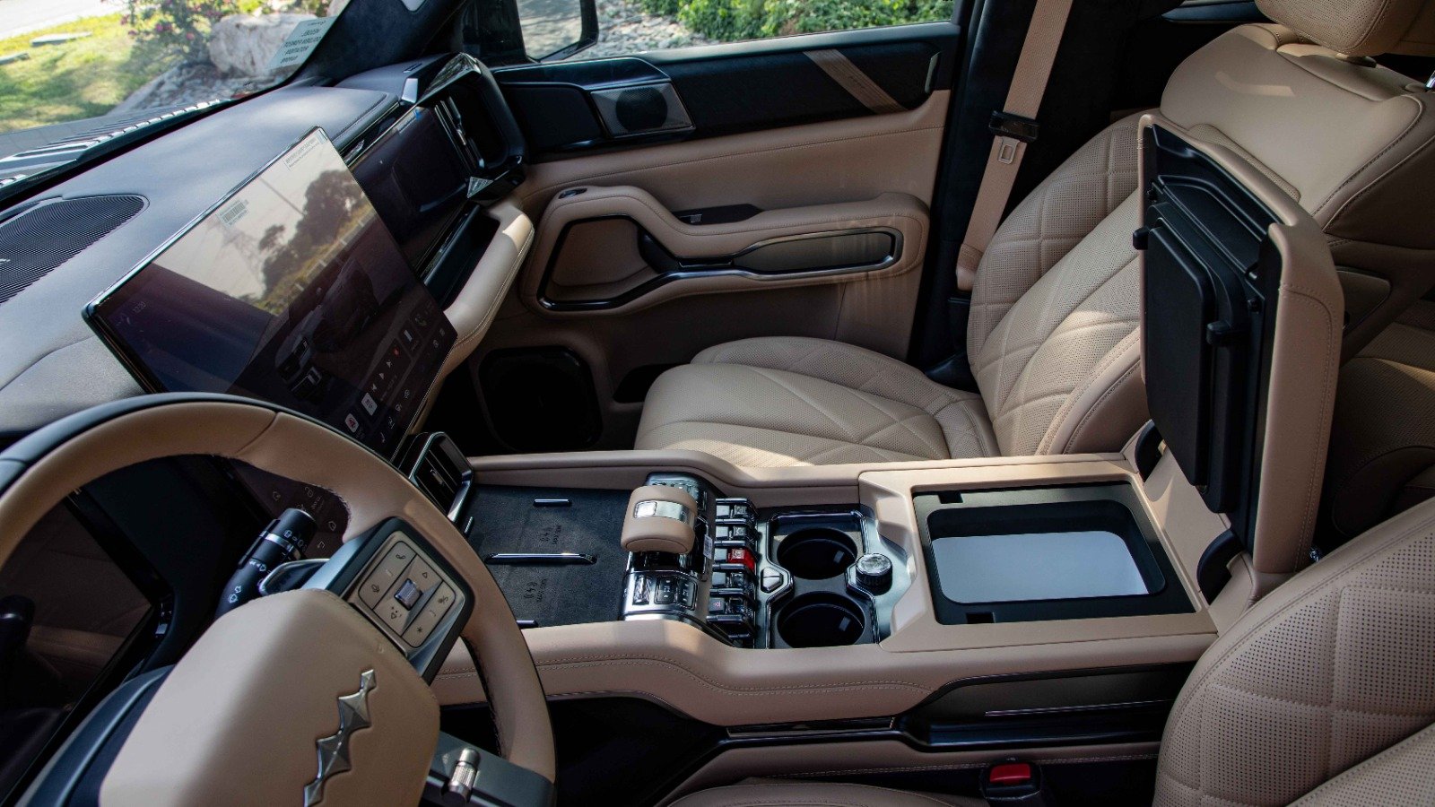- Intelligent Comfort: Built-in refrigerator (with cooling/heating), multi-zone climate control, and custom ambient lighting.