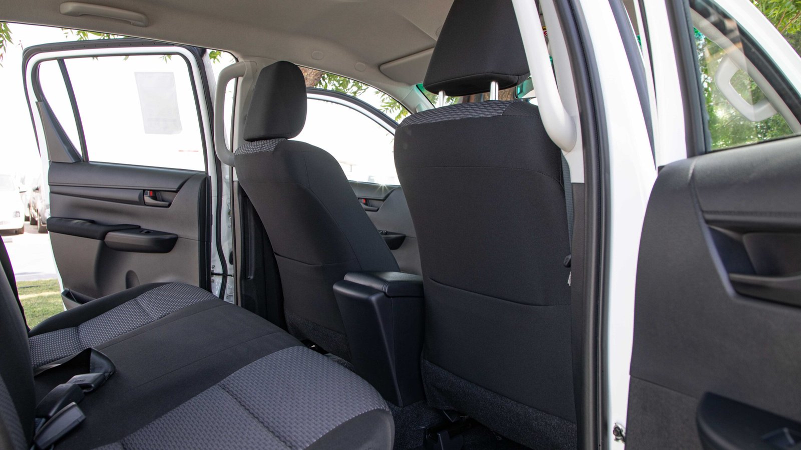 Interior Fabric seats, manual A/C, urethane steering wheel with audio controls